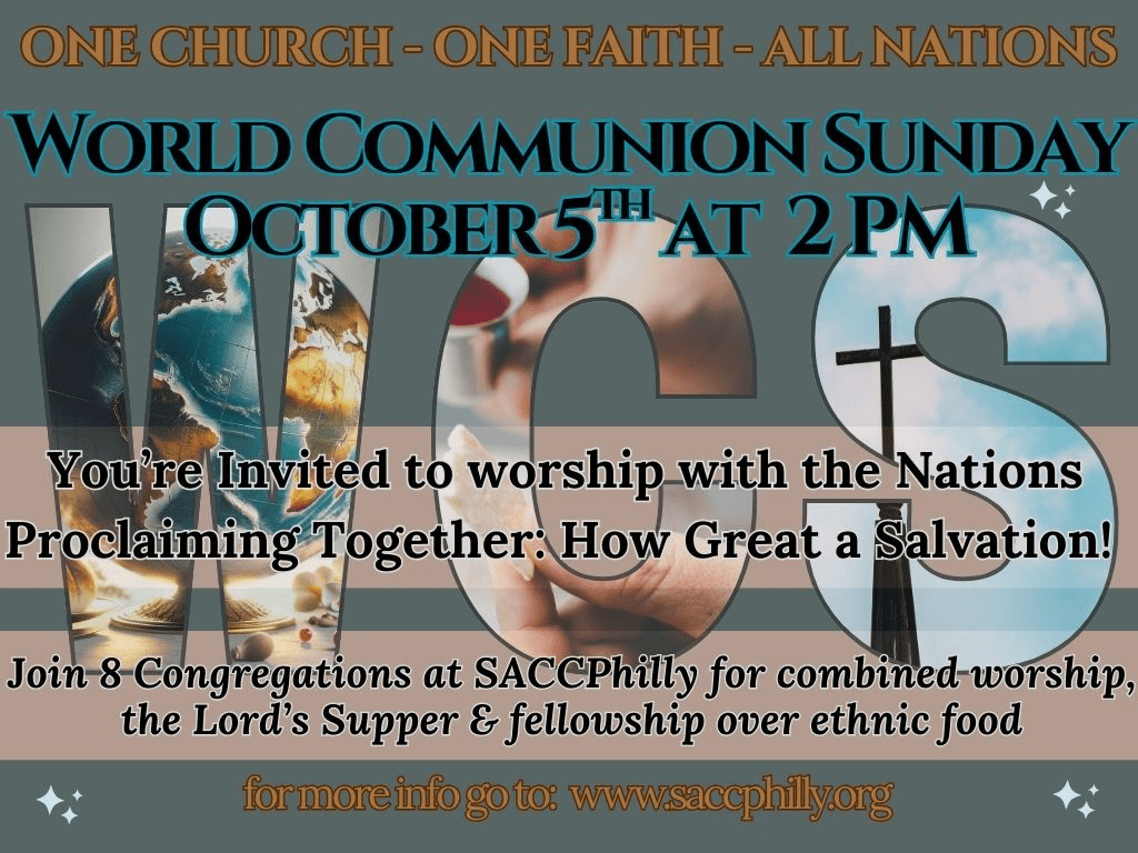 Join with church members from around the world at SACCPhilly as we celebrate our unity in Christ and remember our Lord’s supreme sacrifice upon the cross.